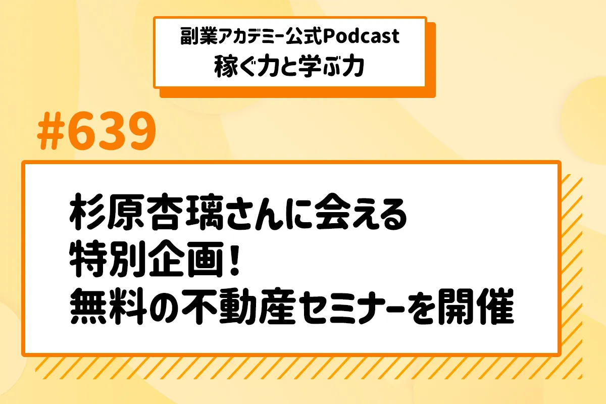 第639回 杉原杏璃さんに会える特別企画!無料の不動産セミナーを開催します!