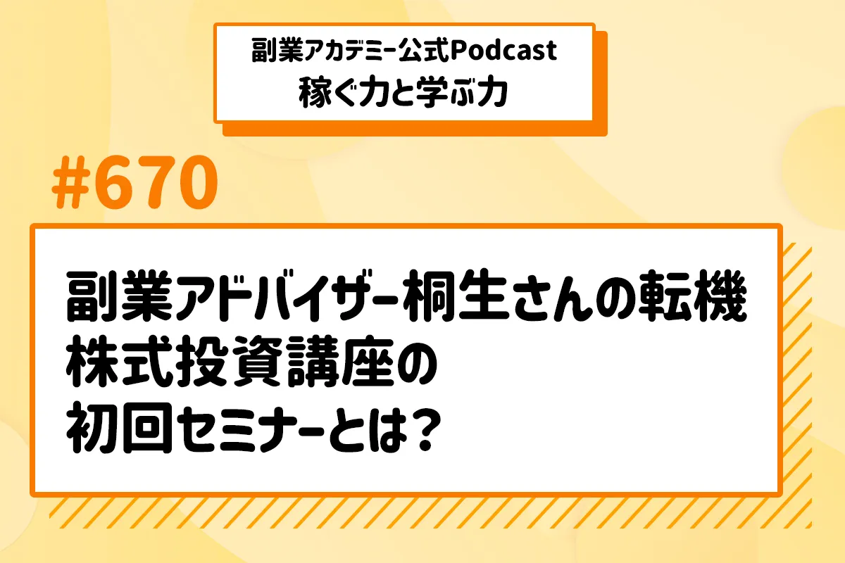 第670回 副業アドバイザー桐生さんの転機、株式投資講座の初回セミナーとは?